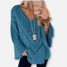 Ontdek de Dames trui – Relaxed fit – Gehaakt breisel – V-hals – Trompetmouwen – Casual stijl van Modehuis Julie. Deze comfortabele dames trui met uniek gehaakt breisel, elegante trompetmouwen en flatterende V-hals biedt een moeiteloos chique, casual stijl voor elke dag. Perfect voor een relaxte pasvorm.