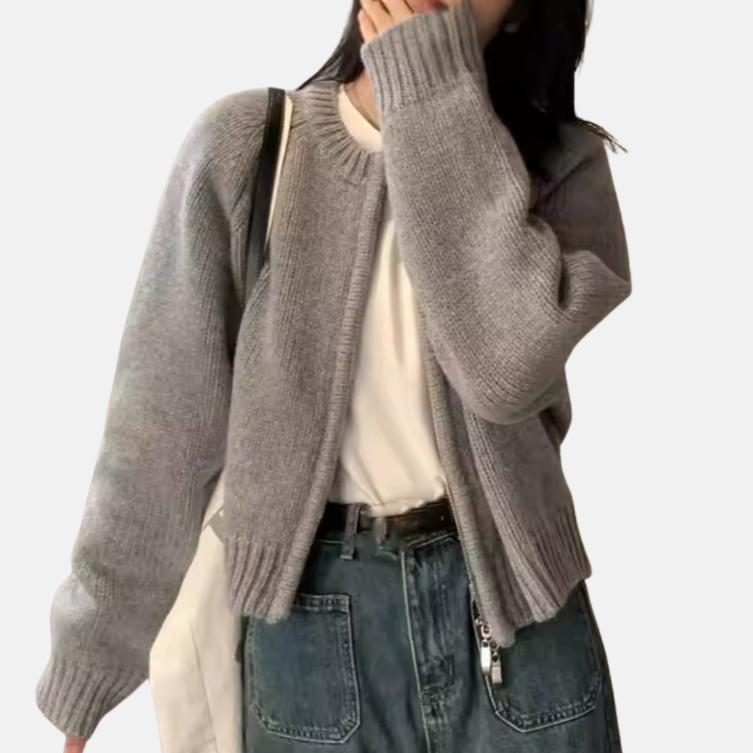 Ontdek ons Dames Vest – Wol Gebreid – Relaxed Fit – Crop Model – Lange Mouwen – Ronde Hals van Modehuis Julie. Dit comfortabele, stijlvolle cropped vest van zachte wol biedt een ontspannen pasvorm en is perfect voor een casual, moderne look. Ideaal voor veelzijdige laagjes en elke dag chic.