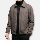 Deze herenjas is vervaardigd uit een geweven stof met een subtiele textuur. Het model heeft een regular fit met een klassieke puntkraag en een volledige ritssluiting aan de voorzijde.