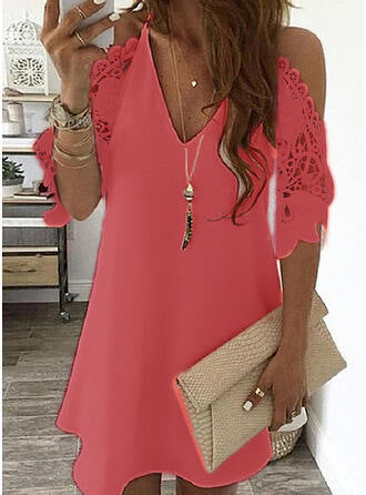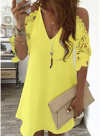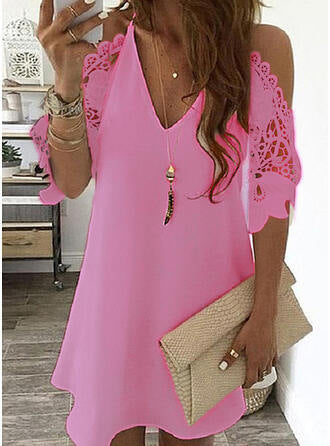 - Ontwerp: A-lijn, V-hals, Kanten mouwen, Cold shoulder