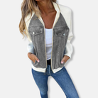 Ontdek het Dames Bomberjack – Wolmix – Denim Panelen – Regular Fit – Heuplengte – Rits Voorkant van Modehuis Julie. Dit stijlvolle bomberjack combineert warme wolmix met stoere denim panelen, perfect voor elke casual outfit. Ervaar comfort en tijdloze elegantie met dit veelzijdige jack.
