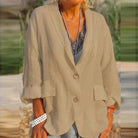 Ontdek het Modehuis Julie Dames Jack – Relaxed Fit – Linnen Katoenmix – Notch Kraag – Lange Mouw – Casual. Dit comfortabele, ademende jack met een losse pasvorm is perfect voor een moeiteloos stijlvolle, casual look. Een veelzijdige toevoeging aan elke garderobe.