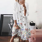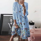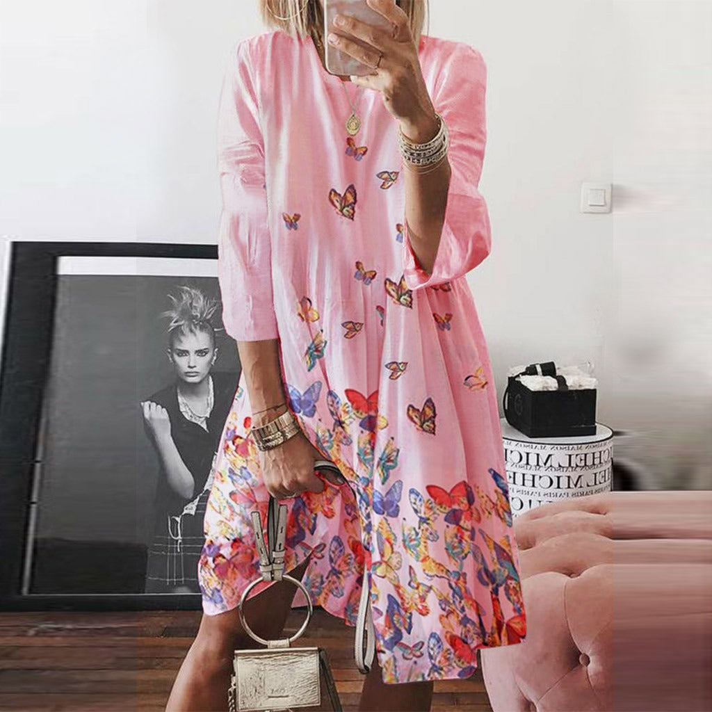 - Ontwerp: A-lijn pasvorm met retro vlinderprint, ronde hals en 3/4 mouwen